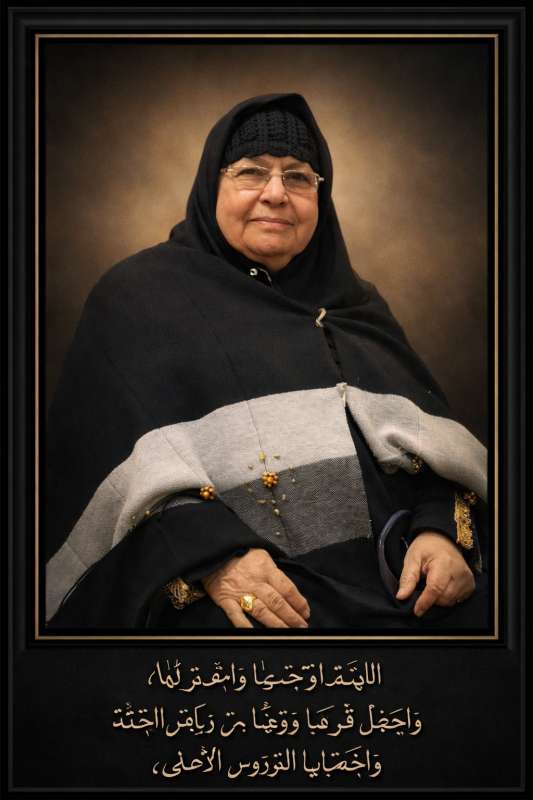 اللهم ارحم ( زينب محمد السيد ام احمد عامر ) وانس وحشتها واجمعنا بها في جنتك ، اللهم ارحمها بقدر شوقنا لها اللهم ارحمها واغفر لها .