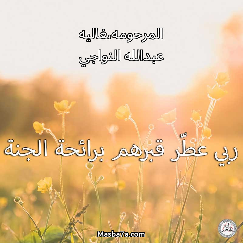اللهم ارحم ( المرحومه،غاليه عبدالله النواجي /المرحوم،حسن محمد النواجي ) وانس وحشتهم واجمعنا بهم في جنتك ، اللهم ارحمهم بقدر شوقنا لهم اللهم ارحمهم واغفر لهم.
