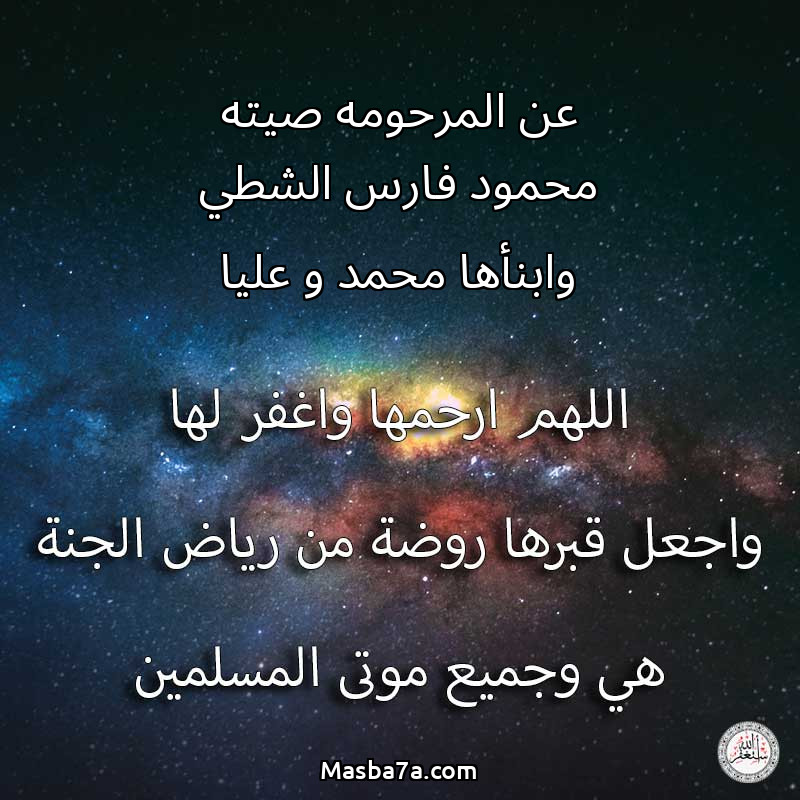 دعاء عن روح المرحومة عن المرحومه صيته محمود فارس الشطي وابنأها محمد و عليا