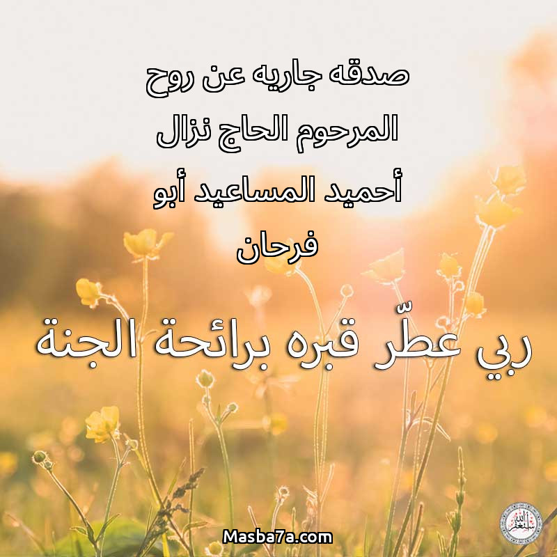 دعاء عن روح المرحوم صدقه جاريه عن روح المرحوم الحاج نزال أحميد المساعيد أبو فرحان
