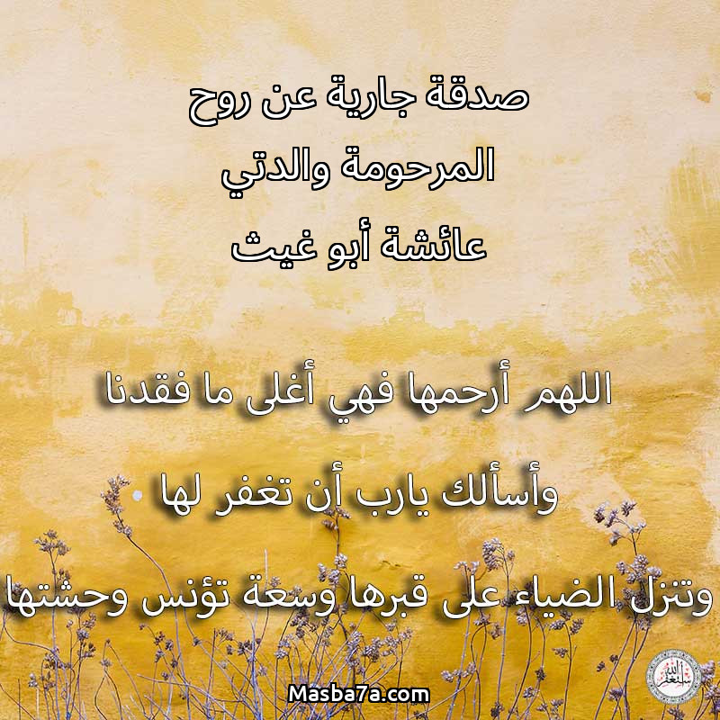 دعاء عن روح المرحومة صدقة جارية عن روح المرحومة والدتي عائشة أبو غيث