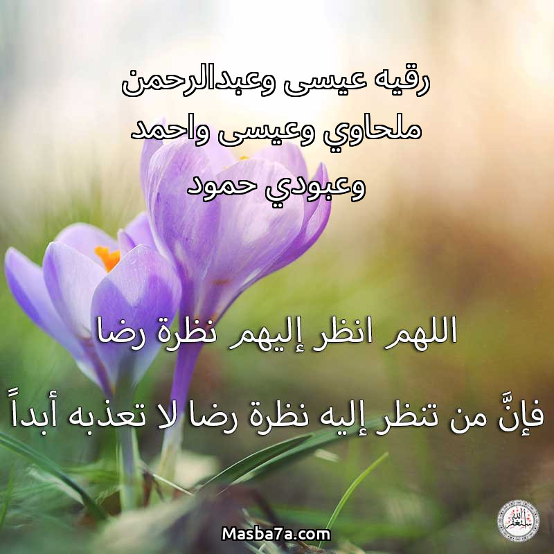 اللهم ارحم ( رقيه عيسى وعبدالرحمن ملحاوي وعيسى واحمد وعبودي حمود ) وانس وحشتهم واجمعنا بهم في جنتك ، اللهم ارحمهم بقدر شوقنا لهم اللهم ارحمهم واغفر لهم.