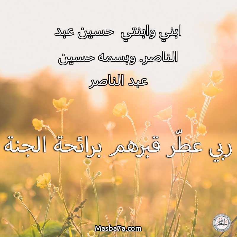 دعاء عن أرواح المرحومين ابني وابنتي حسين عبد الناصر. وبسمه حسين عبد الناصر