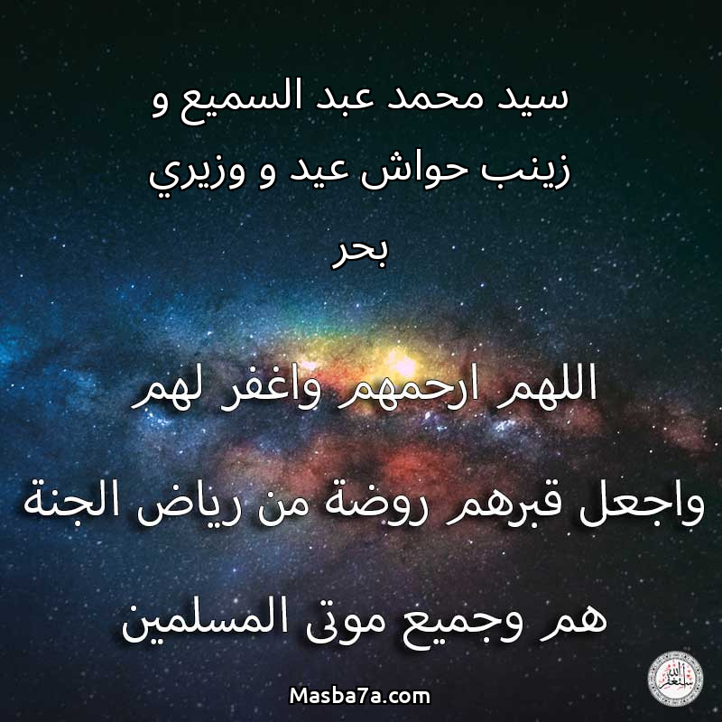 اللهم ارحم ( سيد محمد عبد السميع و زينب حواش عيد و وزيري بحر ) وانس وحشتهم واجمعنا بهم في جنتك ، اللهم ارحمهم بقدر شوقنا لهم اللهم ارحمهم واغفر لهم.