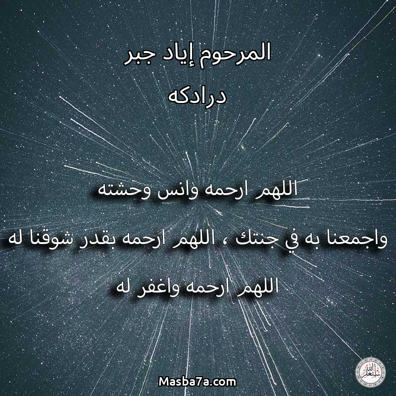 اللهم ارحم ( المرحوم إياد جبر درادكه ) وانس وحشته واجمعنا به في جنتك ، اللهم ارحمه بقدر شوقنا له اللهم ارحمه واغفر له .