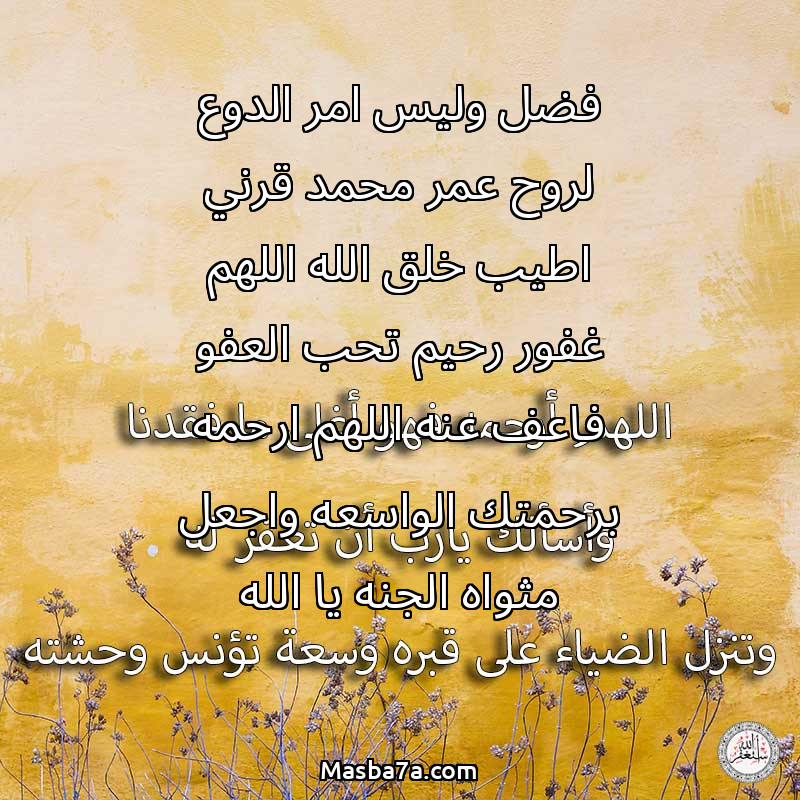 فضل وليس امر الدوع لروح عمر محمد قرني اطيب خلق الله اللهم غفور رحيم تحب العفو فاعف عنه اللهم ارحمه برحمتك الواسعه واجعل مثواه الجنه يا الله