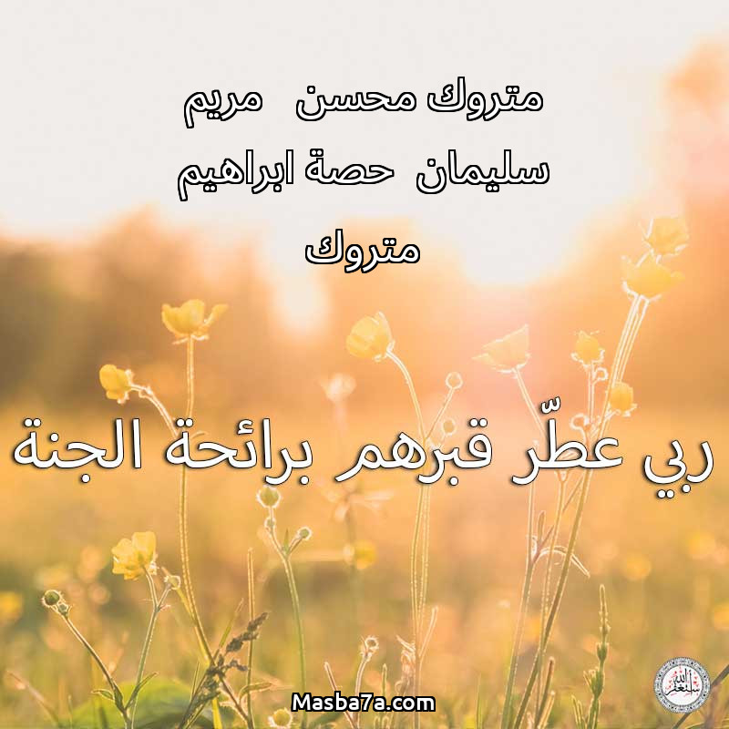 اللهم ارحم ( متروك محسن - مريم سليمان -حصة-ابراهيم متروك ) وانس وحشتهم واجمعنا بهم في جنتك ، اللهم ارحمهم بقدر شوقنا لهم اللهم ارحمهم واغفر لهم.