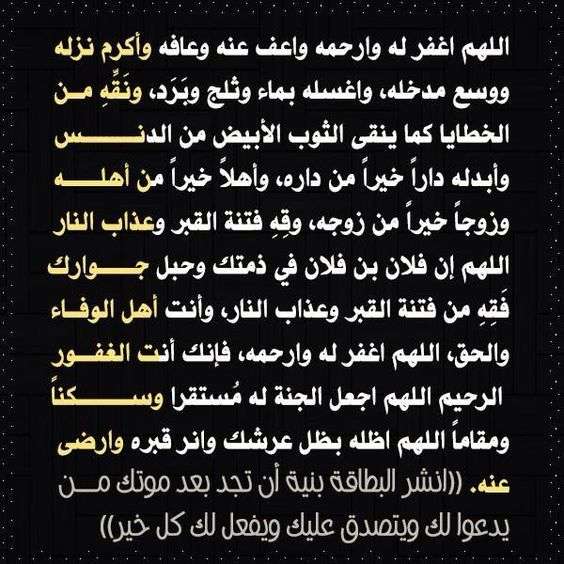 اللهم اغسلهم بالماء والثلج والبرد ونقهم من الذنوب والخطايا كما ينقى الثوب الابيض من الدنس