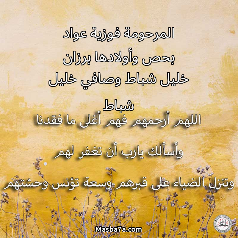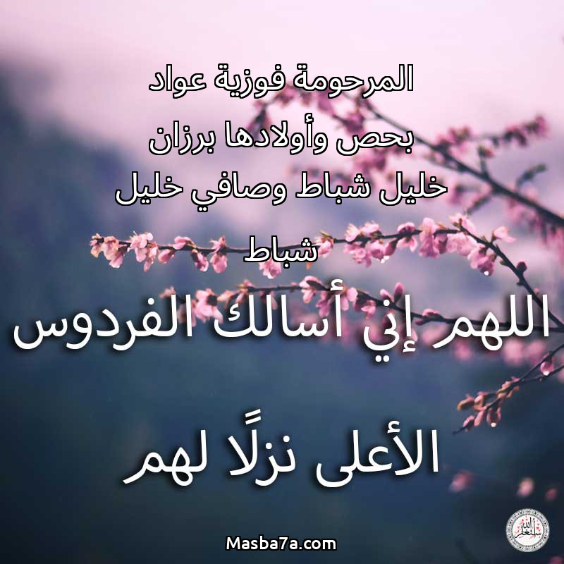 دعاء عن أرواح المرحومين المرحومة فوزية عواد بحص وأولادها برزان خليل شباط وصافي خليل شباط