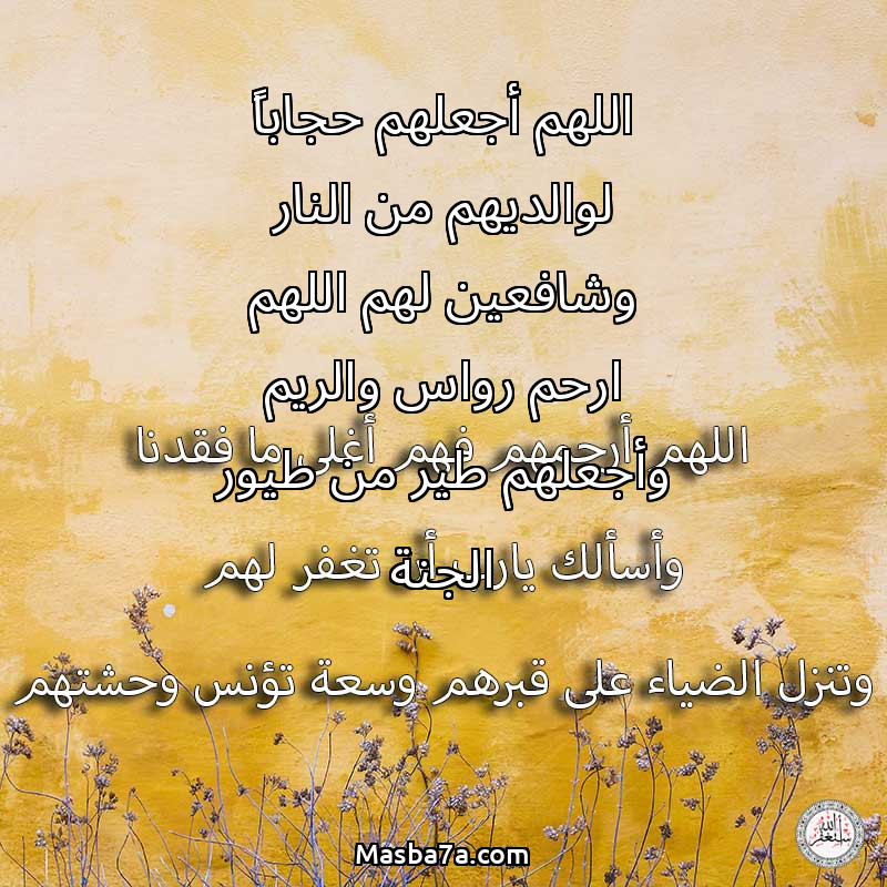 دعاء عن أرواح المرحومين اللهم أجعلهم حجاباً لوالديهم من النار وشافعين لهم اللهم ارحم رواس والريم وأجعلهم طير من طيور الجنة