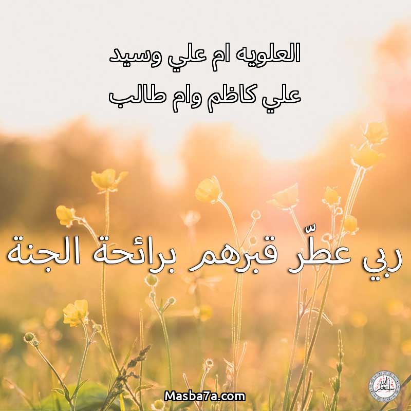 اللهم ارحم ( العلويه ام علي وسيد علي كاظم وام طالب ) وانس وحشتهم واجمعنا بهم في جنتك ، اللهم ارحمهم بقدر شوقنا لهم اللهم ارحمهم واغفر لهم.