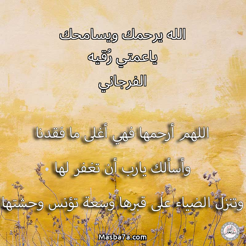 دعاء عن روح المرحومة الله يرحمك ويسامحك ياعمتي رُقيه الفرجاني