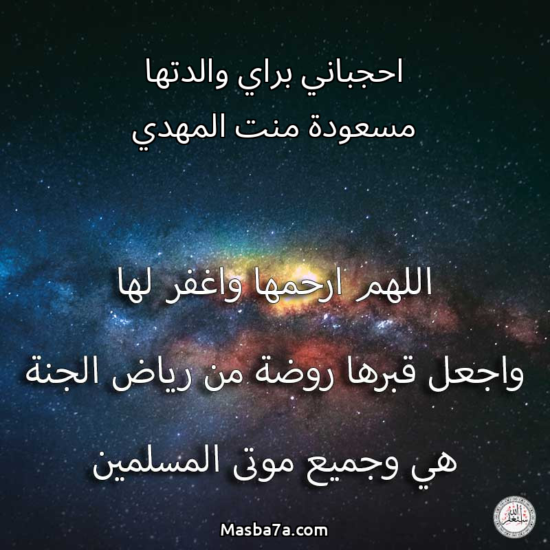 اللهم ارحم ( احجباني براي والدتها مسعودة منت المهدي ) وانس وحشتها واجمعنا بها في جنتك ، اللهم ارحمها بقدر شوقنا لها اللهم ارحمها واغفر لها .