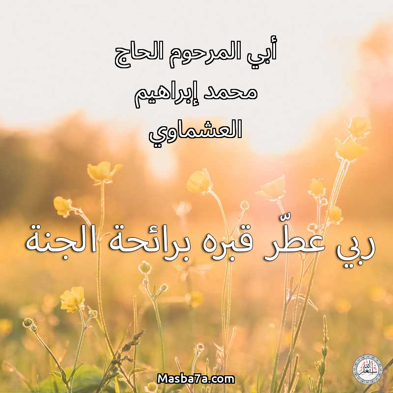 اللهم ارحم ( أبي المرحوم الحاج محمد إبراهيم العشماوي ) وانس وحشته واجمعنا به في جنتك ، اللهم ارحمه بقدر شوقنا له اللهم ارحمه واغفر له .