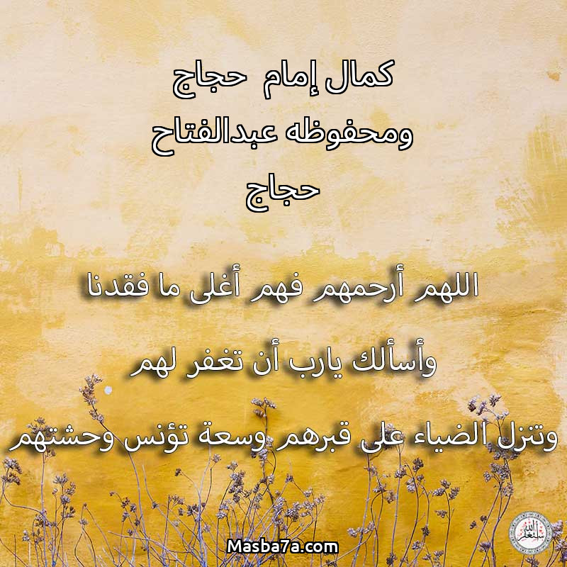 اللهم ارحم ( كمال إمام حجاج ومحفوظه عبدالفتاح حجاج ) وانس وحشتهم واجمعنا بهم في جنتك ، اللهم ارحمهم بقدر شوقنا لهم اللهم ارحمهم واغفر لهم.