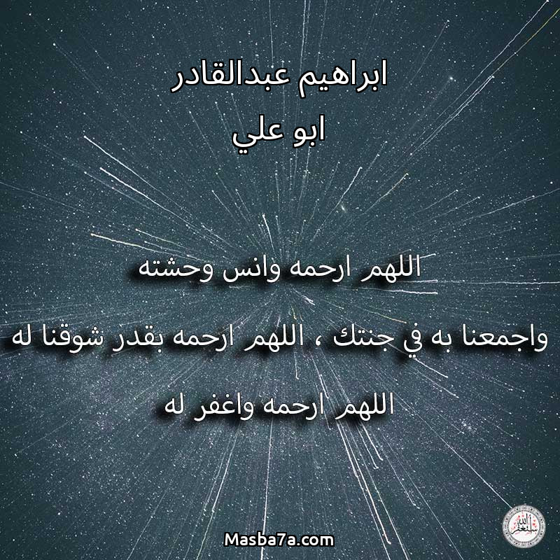 اللهم ارحم ( ابراهيم عبدالقادر ابو علي ) وانس وحشته واجمعنا به في جنتك ، اللهم ارحمه بقدر شوقنا له اللهم ارحمه واغفر له .
