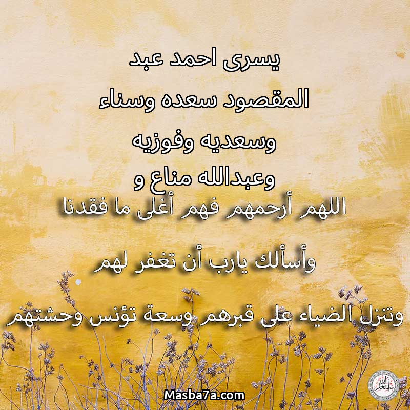 دعاء عن أرواح المرحومين يسرى احمد عبد المقصود سعده وسناء وسعديه وفوزيه وعبدالله مناع و