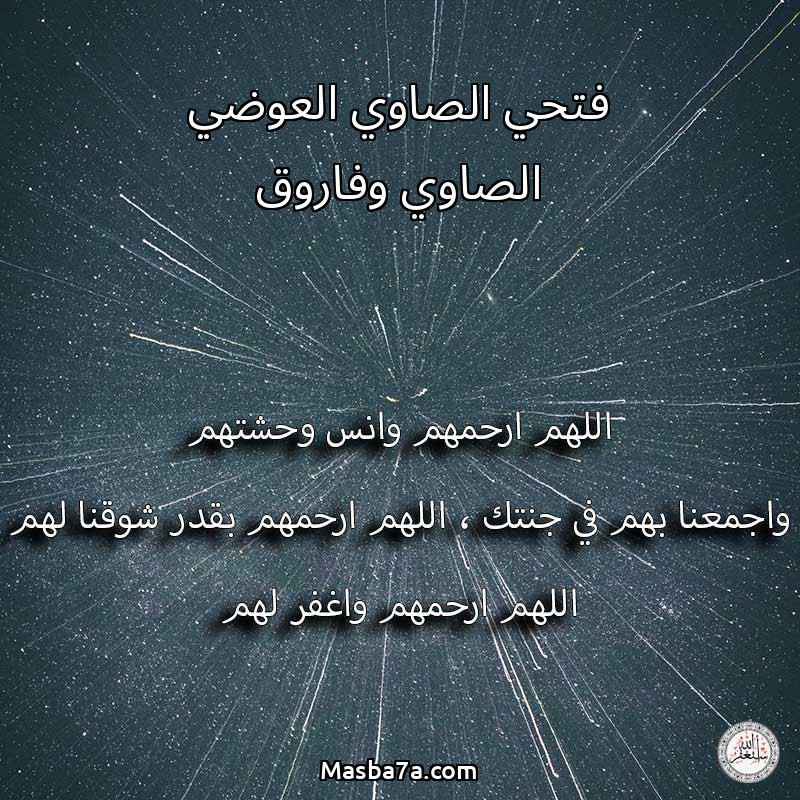 اللهم ارحم ( فتحي الصاوي العوضي الصاوي وفاروق ) وانس وحشتهم واجمعنا بهم في جنتك ، اللهم ارحمهم بقدر شوقنا لهم اللهم ارحمهم واغفر لهم.