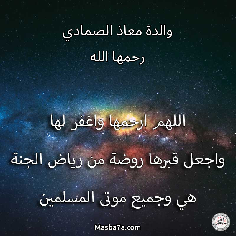 اللهم ارحم ( والدة معاذ الصمادي رحمها الله ) وانس وحشتها واجمعنا بها في جنتك ، اللهم ارحمها بقدر شوقنا لها اللهم ارحمها واغفر لها .