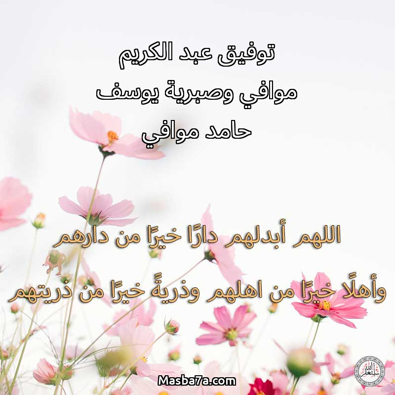 اللهم ارحم ( توفيق عبد الكريم موافي وصبرية يوسف حامد موافي ) وانس وحشتهم واجمعنا بهم في جنتك ، اللهم ارحمهم بقدر شوقنا لهم اللهم ارحمهم واغفر لهم.