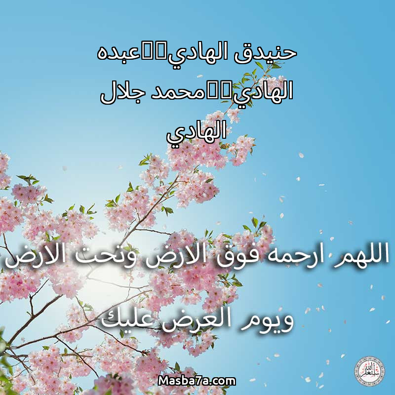 اللهم ارحم ( حنيدق الهادي&عبده الهادي&محمد جلال الهادي ) وانس وحشته واجمعنا به في جنتك ، اللهم ارحمه بقدر شوقنا له اللهم ارحمه واغفر له .