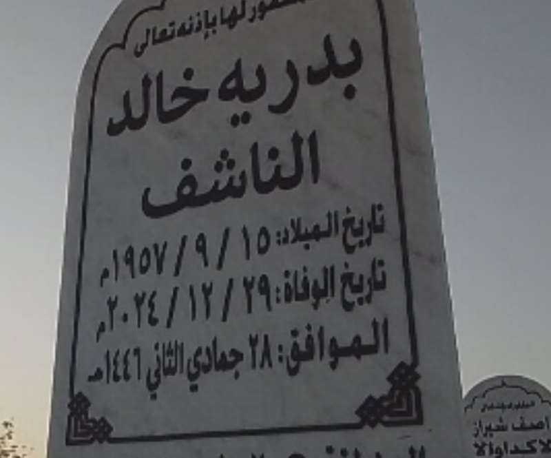 اللهم ارحم ( بدرية خالد الناشف ) وانس وحشتها واجمعنا بها في جنتك ، اللهم ارحمها بقدر شوقنا لها اللهم ارحمها واغفر لها .