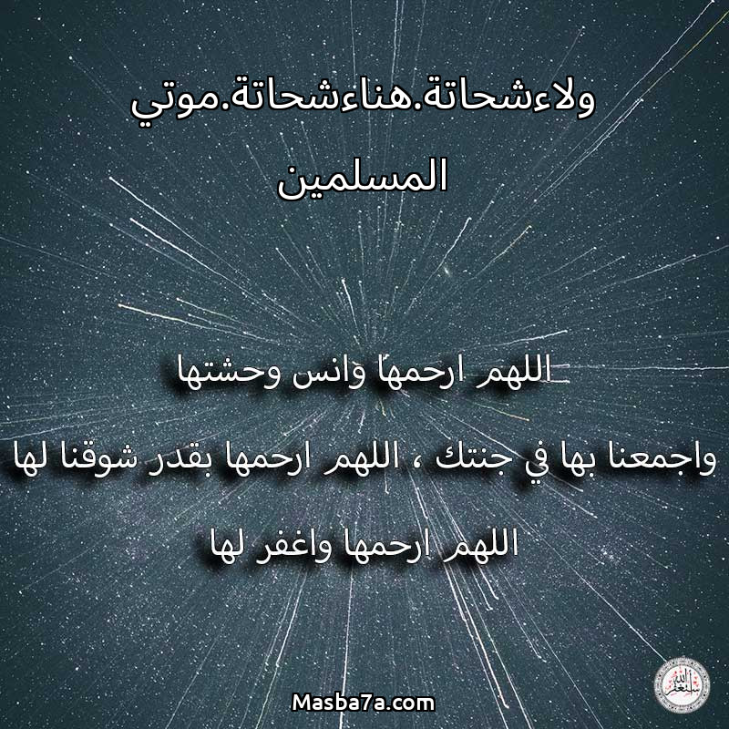 اللهم ارحم ( ولاءشحاتة.هناءشحاتة.موتي المسلمين ) وانس وحشتها واجمعنا بها في جنتك ، اللهم ارحمها بقدر شوقنا لها اللهم ارحمها واغفر لها .