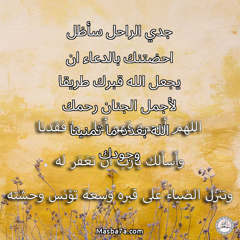 دعاء عن روح المرحوم جدي الراحل سأظل احضتنك بالدعاء ان يجعل الله قبرك طريقا لأجمل الجنان رحمك الله بعدد ما تمنينا وجودك