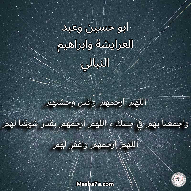اللهم ارحم ( ابو حسين وعبد العرايشة وابراهيم النبالي ) وانس وحشتهم واجمعنا بهم في جنتك ، اللهم ارحمهم بقدر شوقنا لهم اللهم ارحمهم واغفر لهم.