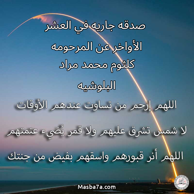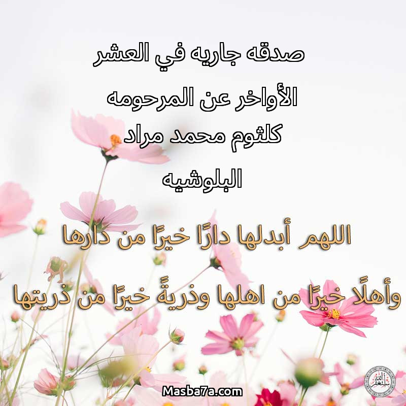 دعاء عن روح المرحومة صدقه جاريه في العشر الأواخر عن المرحومه كلثوم محمد مراد البلوشيه
