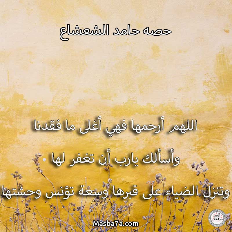 اللهم ارحم ( حصه حامد الشعشاع ) وانس وحشتها واجمعنا بها في جنتك ، اللهم ارحمها بقدر شوقنا لها اللهم ارحمها واغفر لها .