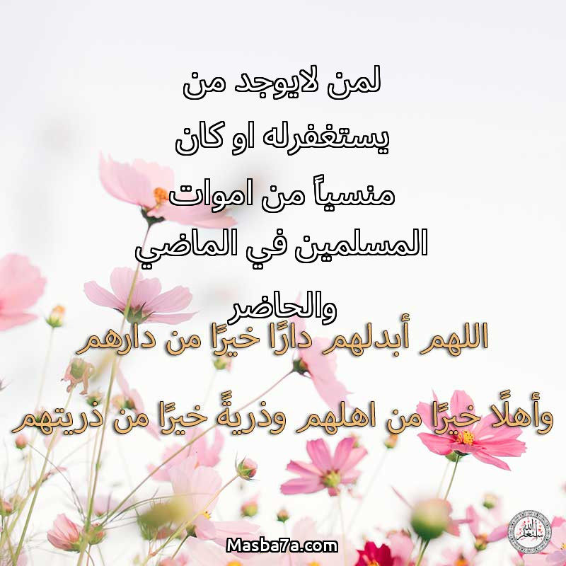 اللهم ارحم ( لمن لايوجد من يستغفرله او كان منسياً من اموات المسلمين في الماضي والحاضر ) وانس وحشتهم واجمعنا بهم في جنتك ، اللهم ارحمهم بقدر شوقنا لهم اللهم ارحمهم واغفر لهم.