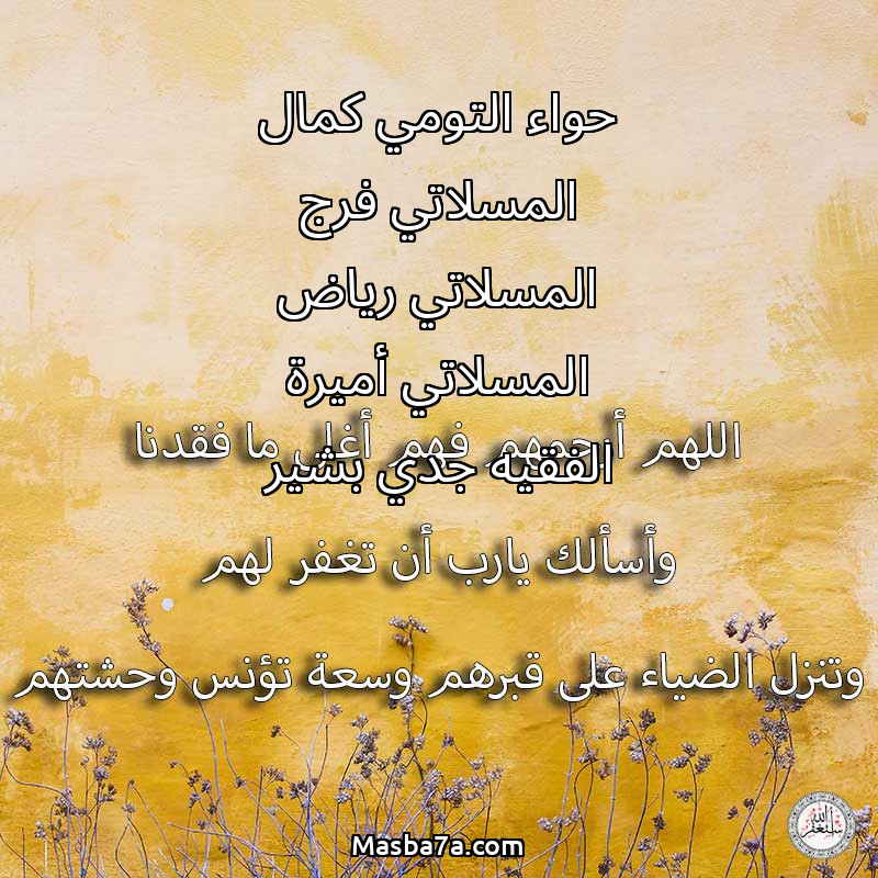 دعاء عن أرواح المرحومين حواء التومي كمال المسلاتي فرج المسلاتي رياض المسلاتي أميرة الفقيه جدي بشير