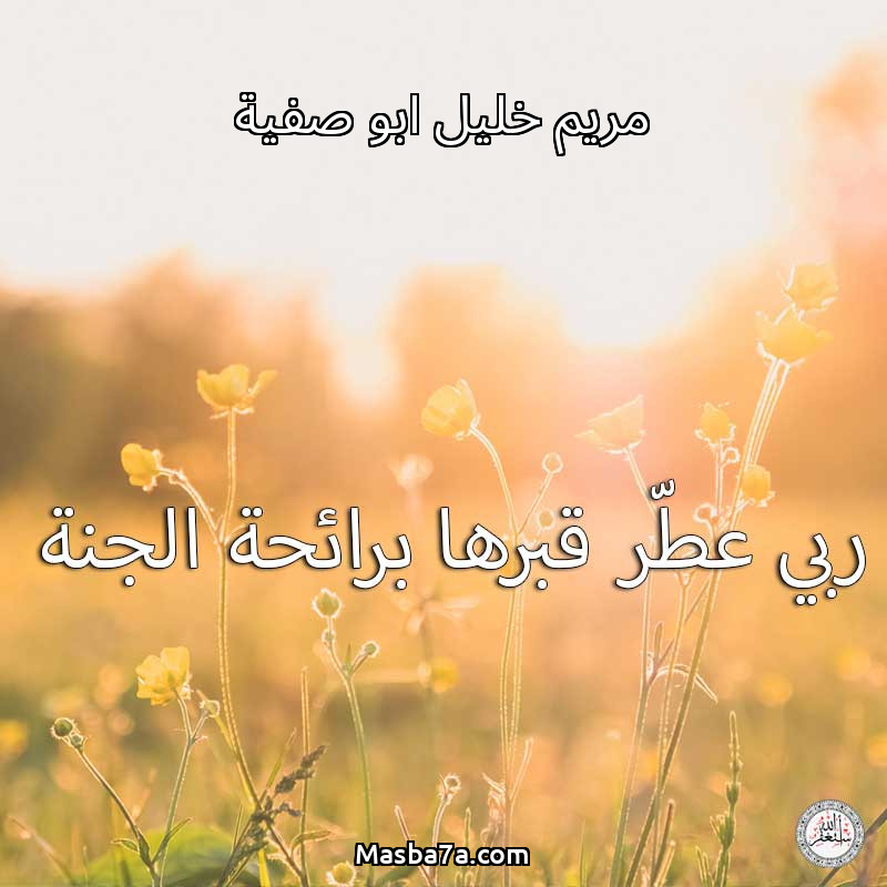 اللهم ارحم ( مريم خليل ابو صفية ) وانس وحشتها واجمعنا بها في جنتك ، اللهم ارحمها بقدر شوقنا لها اللهم ارحمها واغفر لها .