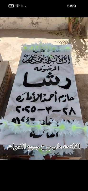 اللهم ارحم ( رشا حازم احمد الأماره ) وانس وحشتها واجمعنا بها في جنتك ، اللهم ارحمها بقدر شوقنا لها اللهم ارحمها واغفر لها .