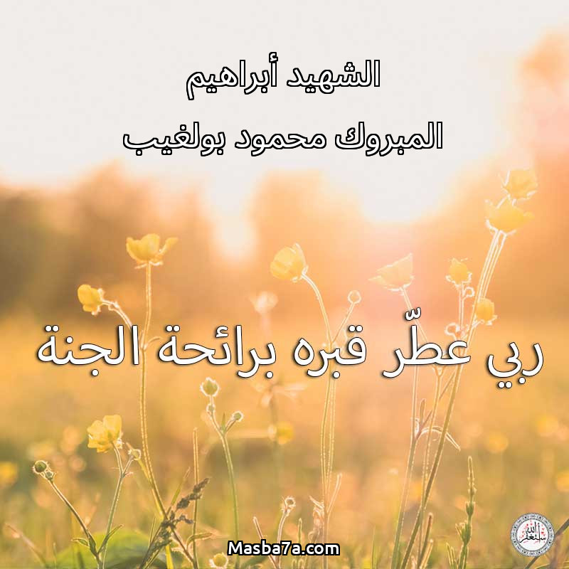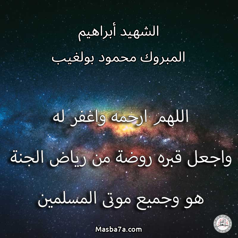 اللهم ارحم ( الشهيد أبراهيم المبروك محمود بولغيب ) وانس وحشته واجمعنا به في جنتك ، اللهم ارحمه بقدر شوقنا له اللهم ارحمه واغفر له .