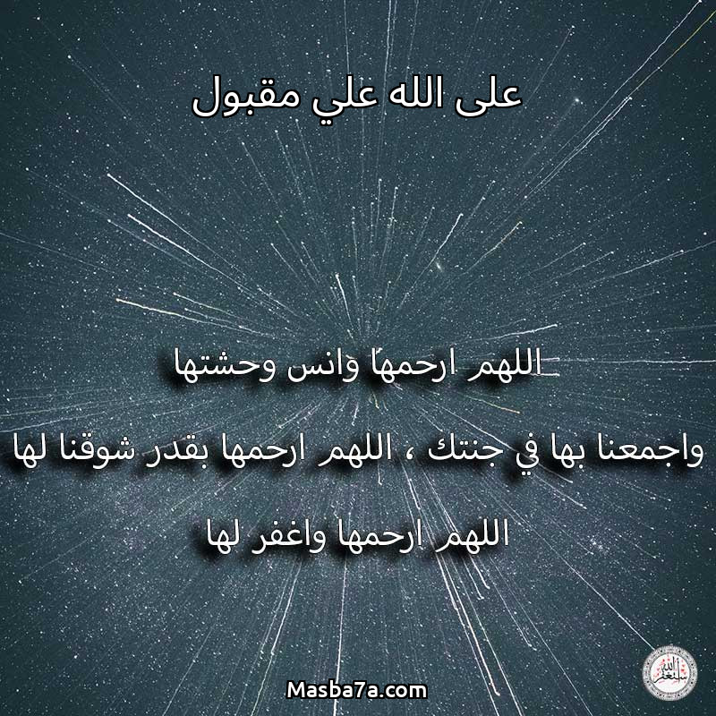 اللهم ارحم ( على الله علي مقبول ) وانس وحشتها واجمعنا بها في جنتك ، اللهم ارحمها بقدر شوقنا لها اللهم ارحمها واغفر لها .