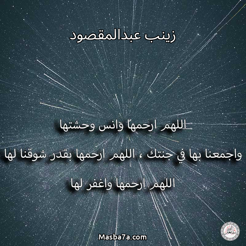 اللهم ارحم ( زينب عبدالمقصود ) وانس وحشتها واجمعنا بها في جنتك ، اللهم ارحمها بقدر شوقنا لها اللهم ارحمها واغفر لها .