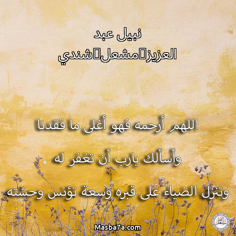 اللهم ارحم ( نبيل عبد العزيز(مشعل)شندي ) وانس وحشته واجمعنا به في جنتك ، اللهم ارحمه بقدر شوقنا له اللهم ارحمه واغفر له .