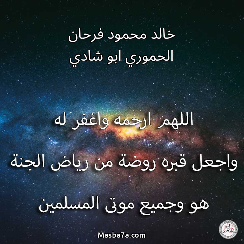 اللهم ارحم ( خالد محمود فرحان الحموري ابو شادي ) وانس وحشته واجمعنا به في جنتك ، اللهم ارحمه بقدر شوقنا له اللهم ارحمه واغفر له .