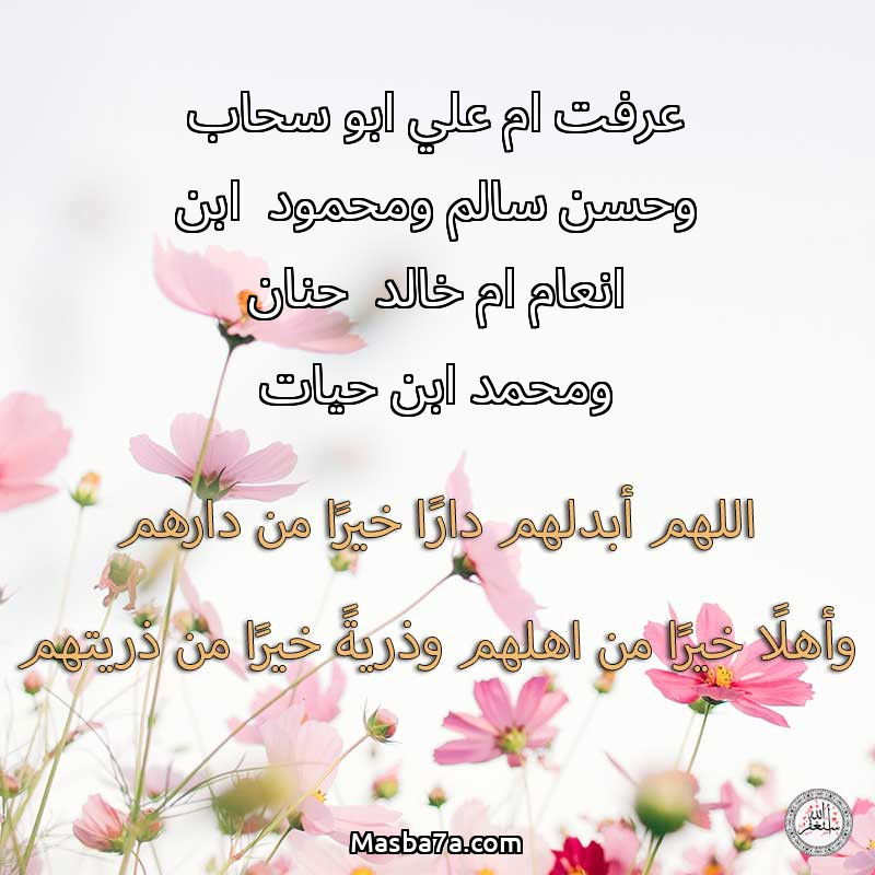 دعاء عن أرواح المرحومين عرفت ام علي ابو سحاب وحسن سالم ومحمود ابن انعام ام خالد حنان ومحمد ابن حيات