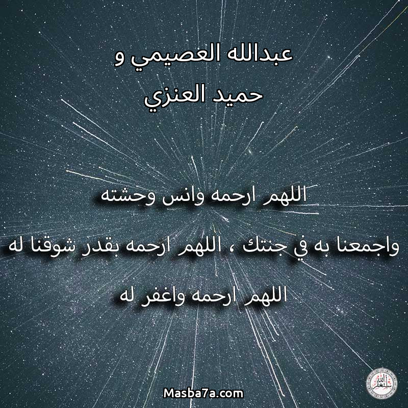اللهم ارحم ( عبدالله العصيمي و حميد العنزي ) وانس وحشته واجمعنا به في جنتك ، اللهم ارحمه بقدر شوقنا له اللهم ارحمه واغفر له .