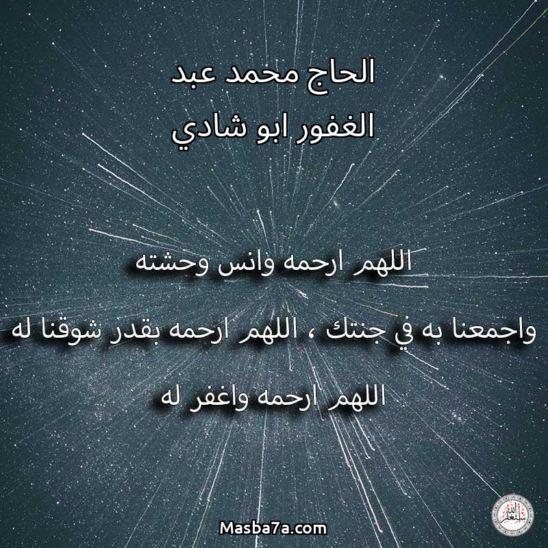 اللهم ارحم ( الحاج محمد عبد الغفور ابو شادي ) وانس وحشته واجمعنا به في جنتك ، اللهم ارحمه بقدر شوقنا له اللهم ارحمه واغفر له .