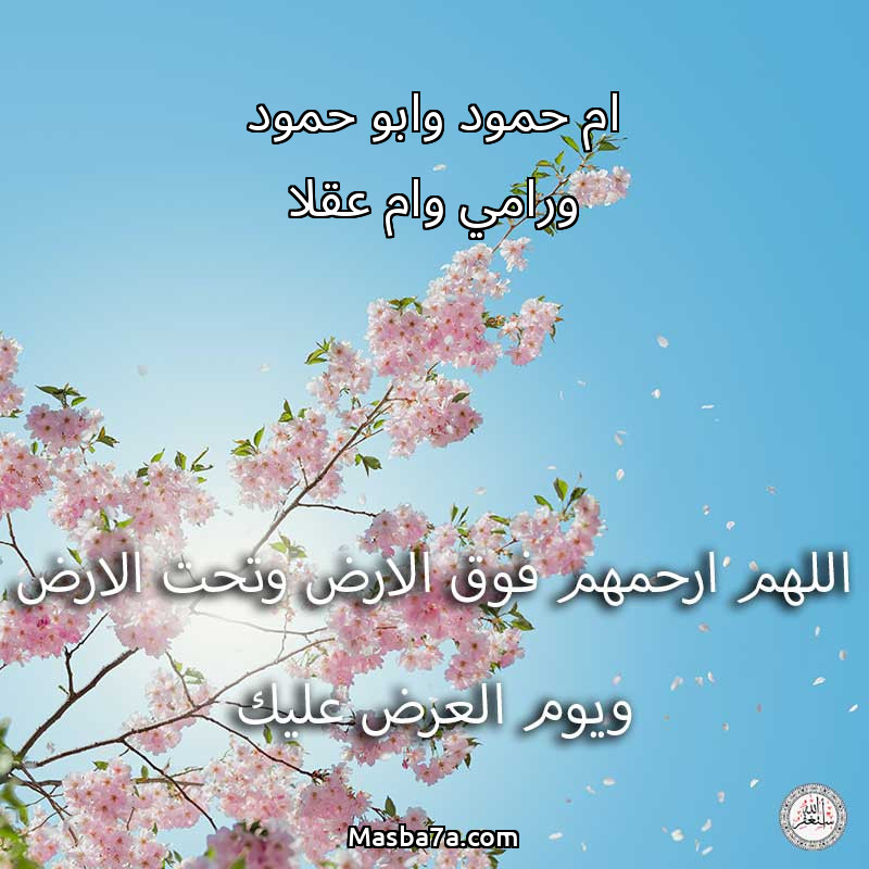 اللهم ارحم ( ام حمود وابو حمود ورامي وام عقلا ) وانس وحشتهم واجمعنا بهم في جنتك ، اللهم ارحمهم بقدر شوقنا لهم اللهم ارحمهم واغفر لهم.