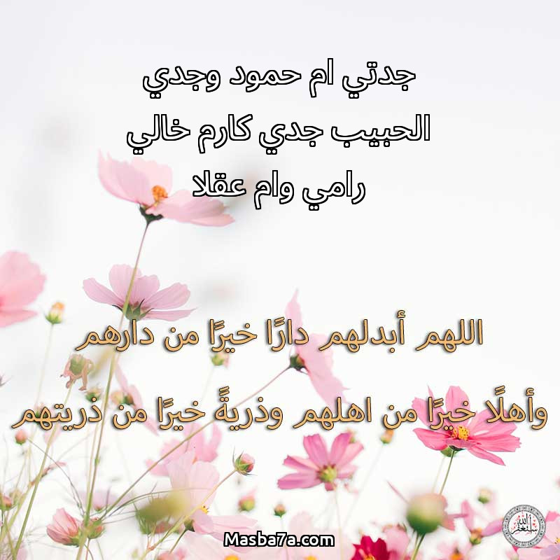 اللهم ارحم ( جدتي ام حمود وجدي الحبيب جدي كارم خالي رامي وام عقلا ) وانس وحشتهم واجمعنا بهم في جنتك ، اللهم ارحمهم بقدر شوقنا لهم اللهم ارحمهم واغفر لهم.