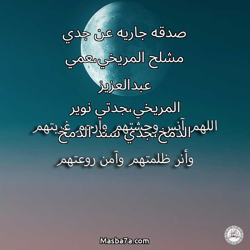 دعاء عن أرواح المرحومين صدقه جاريه عن جدي مشلح المريخي،عمي عبدالعزيز المريخي،جدتي نوير الدمخ،جدي سند الدمخ