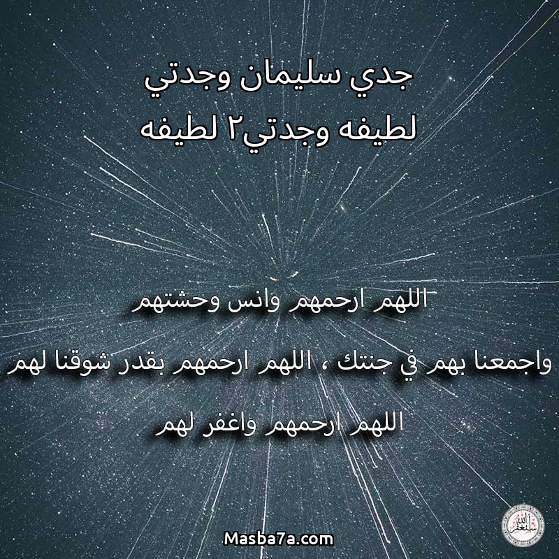 اللهم ارحم ( جدي سليمان وجدتي لطيفه وجدتي2 لطيفه ) وانس وحشتهم واجمعنا بهم في جنتك ، اللهم ارحمهم بقدر شوقنا لهم اللهم ارحمهم واغفر لهم.