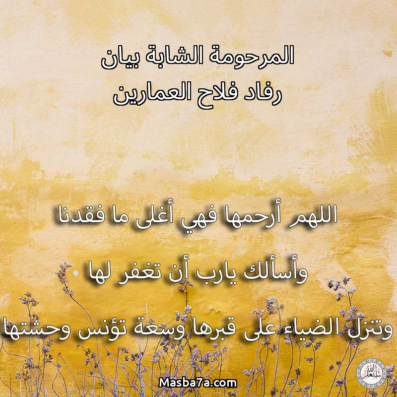 دعاء عن روح المرحومة المرحومة الشابة بيان رفاد فلاح العمارين