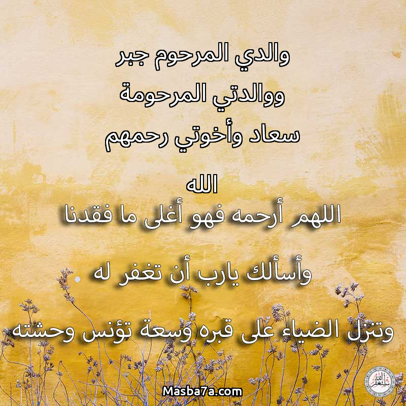 دعاء عن روح المرحوم والدي المرحوم جبر ووالدتي المرحومة سعاد وأخوتي رحمهم الله
