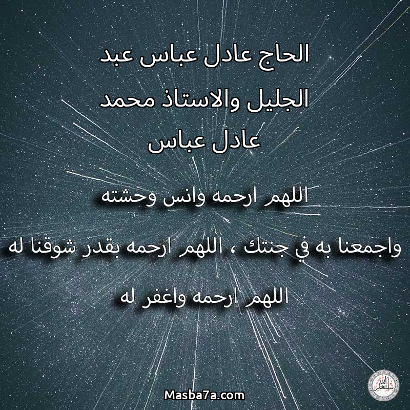 اللهم ارحم ( الحاج عادل عباس عبد الجليل والاستاذ محمد عادل عباس ) وانس وحشته واجمعنا به في جنتك ، اللهم ارحمه بقدر شوقنا له اللهم ارحمه واغفر له .